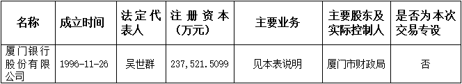 (二)廈門銀行股份有限公司為非上市金融機(jī)構(gòu),其基本信息如下: