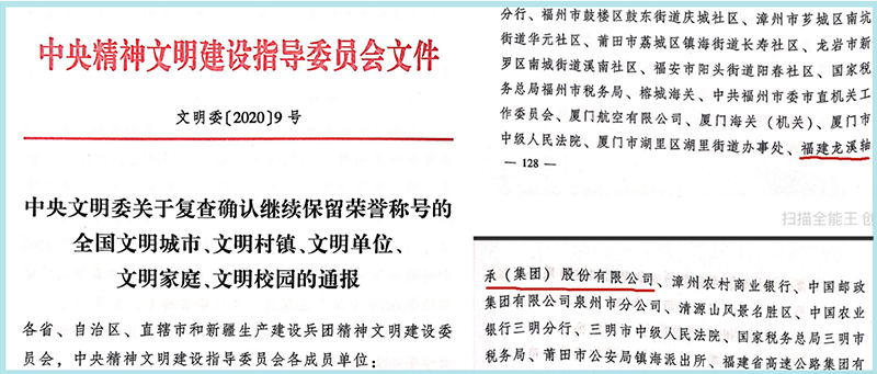 今后,公司將持續(xù)堅(jiān)持以習(xí)近平新時代中國特色社會主義思想武裝頭腦,深入學(xué)習(xí)貫徹落實(shí)黨的十九屆五中全會精神,不斷增強(qiáng)“四個意識”,堅(jiān)定“四個自信”,做到“兩個維護(hù)”,積極踐行社會主義核心價(jià)值觀,牢記初心使命,繼續(xù)鞏固和發(fā)展全國文明單位創(chuàng)建成果,強(qiáng)化文明創(chuàng)建頂層設(shè)計(jì),積極爭創(chuàng)第七屆全國文明單位,為漳州創(chuàng)建全國文明城市、加快推進(jìn)新時代富美新漳州建設(shè),奮力當(dāng)好新時代新福建建設(shè)先鋒、新增長極和重要引擎作出更大貢獻(xiàn)!