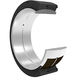 產品特點:外圈徑向分為兩半,用螺釘鎖緊,材料為碳鋼,磷化,球面襯有PTFE復合材料;內圈材料為軸承鋼,淬火,球面鍍硬鉻,型號后置代號加S,表示內圈有潤滑油槽油孔。