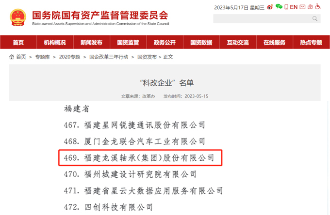 2023年5月15日,國務院國資委發(fā)布最新一批國企改革“科改企業(yè)”名單,龍軸集團成功入選,由“雙百企業(yè)”轉(zhuǎn)為“科改企業(yè)”,成為福建省4家新入選“科改企業(yè)”中唯一的地方國有控股上市公司。