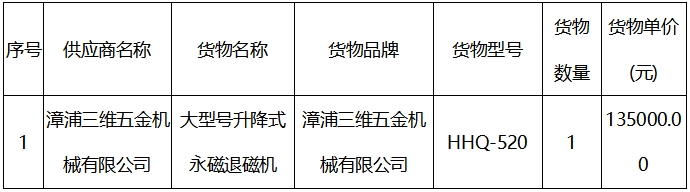 龍軸集團大型號升降式永磁退磁機采購與安裝中標公告