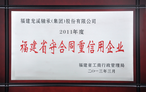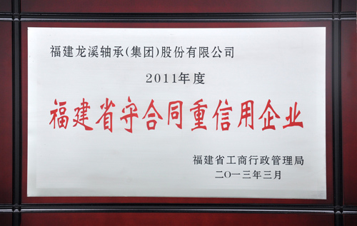 近日,公司在福建省工商局2011年度福建省守合同重信用企業(yè)創(chuàng)建活動(dòng)中獲得“福建省守合同重信用企業(yè)”榮譽(yù)稱號(hào)。