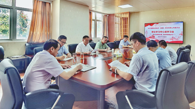 2022年7月28日,集團黨委書記、董事長陳晉輝主持召開黨委理論學習中心組學習會,帶領中心組成員深入學習領會“第七專題:習近平總書記關于推進馬克思主義中國化時代化的重要論述”“第九專題:習近平總書記關于黨的百年奮斗重大成就和歷史經驗的重要論述”“第十三專題:習近平總書記關于維護意識形態安全的重要論述”以及《中國共產黨宣傳工作簡史》,并作了“初心如磐謀發展,向史而新闊步行”講話。集團黨委委員、常務副總經理鄭長虹,集團黨委副書記劉明福在會上作了主講發言,其他理論學習中心組成員也在會上作了交流發言。