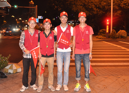 活動當(dāng)晚,受臺風(fēng)天氣影響,下起了雨,但這絲毫不影響我司志愿者們的服務(wù)熱情,他們統(tǒng)一身著志愿服務(wù)紅馬褂、帽子,持宣傳小旗、口哨,早早地走上街頭,對闖紅燈和橫穿馬路的行人進行耐心、禮貌的勸導(dǎo),制止亂扔垃圾等不文明行為的發(fā)生,讓行人自覺規(guī)范行為,樹立較強的交通安全意識和文明風(fēng)尚意識。
