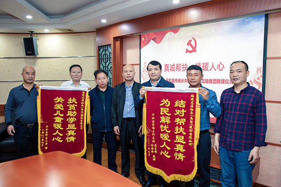 2021年4月19日,漳州市平和縣秀峰鄉(xiāng)坪東村村支書(shū)、村長(zhǎng)及坪東小學(xué)校長(zhǎng)一行到公司贈(zèng)送錦旗,感謝公司三年多來(lái)對(duì)他們的幫扶。公司黨委書(shū)記、董事長(zhǎng)陳晉輝,黨委副書(shū)記劉明福熱情接待坪東村一行。