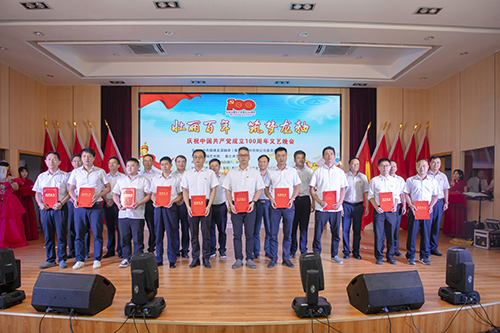 為熱烈慶祝中國(guó)共產(chǎn)黨成立100周年,謳歌黨的豐功偉績(jī)和偉大成就,展現(xiàn)在黨的領(lǐng)導(dǎo)下龍軸自強(qiáng)不息、闊步前行的精神風(fēng)貌,2021年6月29日晚,由公司黨委主辦、龍軸藝術(shù)團(tuán)及春之聲藝術(shù)團(tuán)協(xié)辦的“壯麗百年 筑夢(mèng)龍軸”慶祝中國(guó)共產(chǎn)黨成立100周年文藝晚會(huì)在藍(lán)田三廠區(qū)龍軸集團(tuán)大禮堂隆重舉行。漳州市政府辦副主任吳維桑、漳州市國(guó)資委黨委委員、二級(jí)調(diào)研員盧宗金、九龍江集團(tuán)黨委副書(shū)記魏育健等嘉賓,公司黨委書(shū)記、董事長(zhǎng)陳晉輝及領(lǐng)導(dǎo)班子其他成員出席晚會(huì),黨總支、黨支部負(fù)責(zé)人,中層干部、業(yè)務(wù)主管及“兩先一優(yōu)”代表等參加。