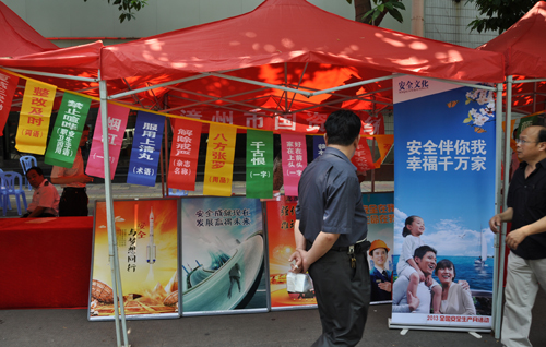 按照《漳州市人民政府安全生產(chǎn)委員會(huì)辦公室關(guān)于做好安全生產(chǎn)宣傳咨詢?nèi)栈顒?dòng)的通知》精神,6月9日早上,我公司代表國(guó)資系統(tǒng)參加漳州市2013年安全生產(chǎn)宣傳咨詢?nèi)栈顒?dòng),在市區(qū)延安北路繁華路段設(shè)置咨詢點(diǎn),舉行安全生產(chǎn)知識(shí)咨詢活動(dòng)。主要活動(dòng)內(nèi)容有:分發(fā)安全生產(chǎn)宣傳資料;安全生產(chǎn)知識(shí)咨詢;謎語競(jìng)猜;安全月主題展等。
