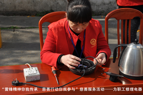 為迎接3月5日第50個(gè)“學(xué)雷鋒紀(jì)念日”暨第13個(gè)“中國(guó)青年志愿者服務(wù)日”的到來(lái),弘揚(yáng)“奉獻(xiàn)、友愛、互助、進(jìn)步”的志愿者精神,進(jìn)一步營(yíng)造公司志愿服務(wù)的濃郁氛圍,2013年3月4日上午,公司慈善義工分隊(duì)在俱樂部籃球場(chǎng)開展 “雷鋒精神你我傳承 慈善行動(dòng)你我參與”慈善服務(wù)活動(dòng)。為社區(qū)居民提供電器檢查維修服務(wù)、健康保健咨詢義診服務(wù)、愛心理發(fā)服務(wù)、防火防盜咨詢服務(wù)等志愿服務(wù)活動(dòng)。