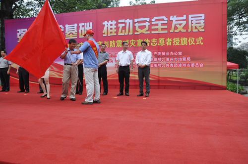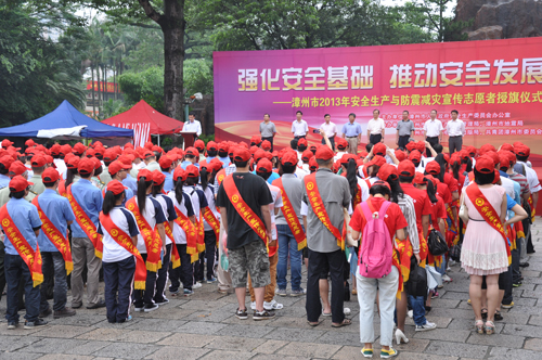 今年5月份是全市第二個防震減災宣傳月,6月份是全國第十二個“安全生產月”。6月13日上午,公司黨委副書記張泰生帶領15名安全生產志愿者代表國資系統參加漳州市2013年安全生產與防震減災宣傳志愿者授旗儀式